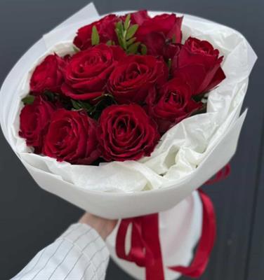A bouquet of 11 red roses, "Leader," is an elegant gesture for a special occasion or any occasion..