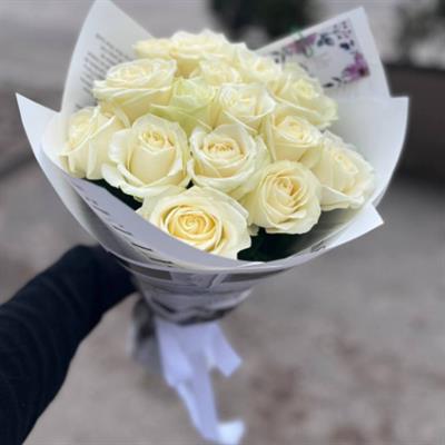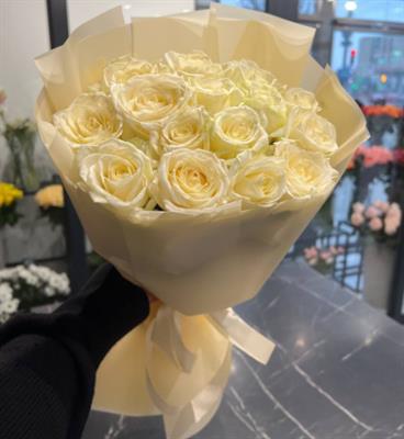 This bouquet of 15 white roses, titled "Tender Feelings," is simply wow! Imagine: each rose is so perfect, as if from a fairy tale. They look so delicate and fragile.