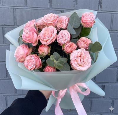 The "Pink Accord" bouquet feels like music written in petals. Five branches of soft pink peony roses blend in perfect balance of color and fragrance. Their silky texture and gentle hue create a sense of calm and tender grace.