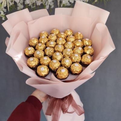 Bouquet of sweets Ferrero. Exquisite and bright bouquet of delicious chocolates just amazing. It can help you to congratulate and inspire new achievements winner, make a graceful compliment to a beautiful woman or unusually small to please the sweet tooth. Gdeb he does not appear, it is bound to cause an explosion of the sweetest emotions and admiration.