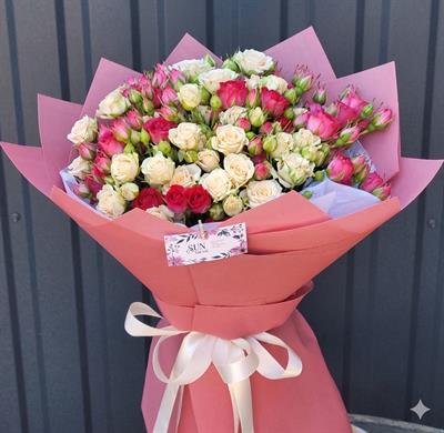 Букет из 15 розовой и кремовой кустовой розы - Розали |