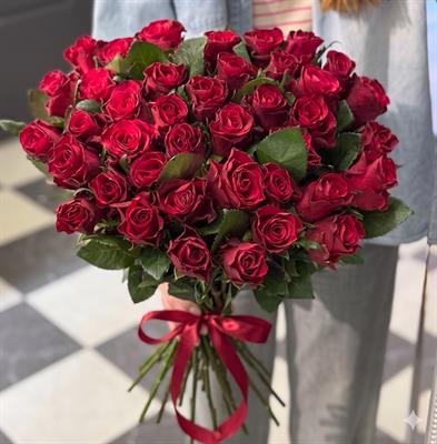 Состав: 51 красная роза сорта Эльторо.