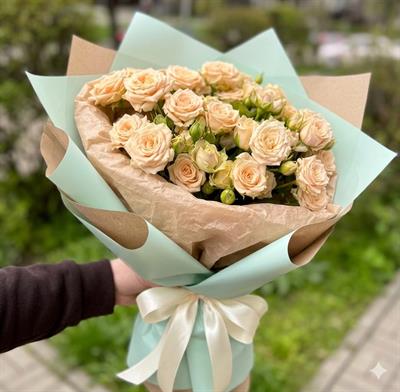 Цветочная композиция "Николь" — это история о вдохновении и тихой радости. Букет из пионовидной кустовой розы очаровывает своей многогранностью и мягким сочетанием оттенков.