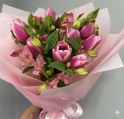 Букет из розовых тюльпанов и альстромерий - Весенняя мелодия |