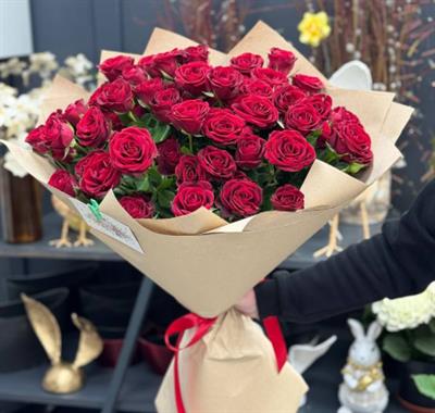 Букет из 15 веток красной кустовой розы - Эсмеральда |