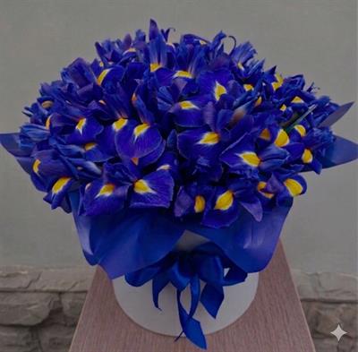 Композиция из 51 ириса в коробке - Искушение