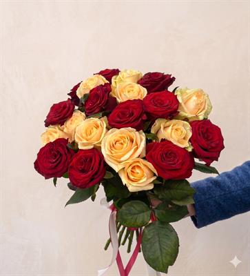Букет із 21 червоної та кремової троянди "Соната" нагадує прогулянку затишними кварталами Львова, де кожен камінчик мостової зберігає історії про кохання. Його теплий контраст відтінків звучить, як м’яка мелодія, що торкається серця з першого погляду. Такий букет легко створить атмосферу свята і стане тим самим жестом, якого інколи бракує, щоб сказати головне без слів.