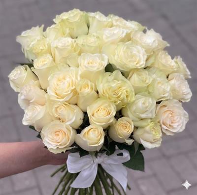 Склад: 35 імпортних білих троянд сорту Мондіаль