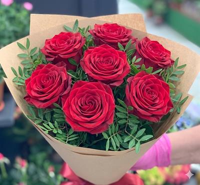 Класичний букет з 7 червоних троянд висловлює впевненість, силу і одночасно витонченість, ніжність. А оригінальне оформлення букета "Класика" нікого не залишить байдужим.