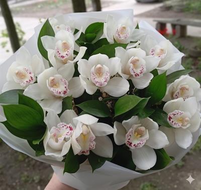 Склад: 9 білих орхідей Цимбідіум.