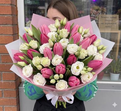 Букет з тюльпанів та еустоми - Симфонія весни |