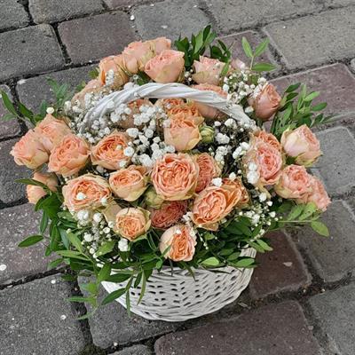 Кошик із кремових кущових троянд із гіпсофілою - Ранковий бриз686 686 |